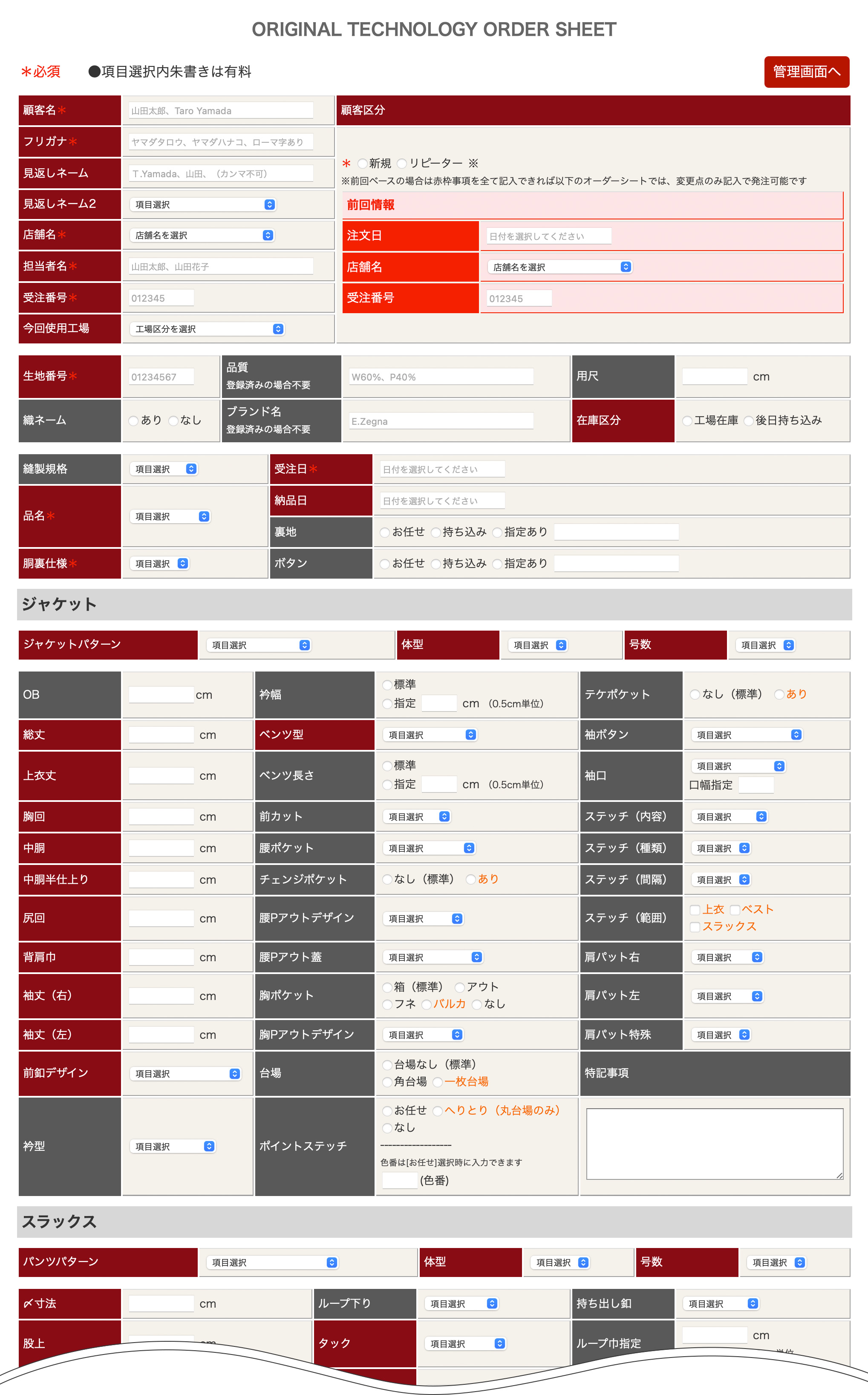 | ポイント2 | 5年以内のリピーターに関しては前寸情報が特定できれば、変更点のみの記入で仕様書作成を完了できます! 【前寸情報】に【変更点だけの採寸票】を加えて、当社が【最終採寸票】を作成し、貴社へ送付、貴社の確認後、正式採寸票として縫製を開始します。 |